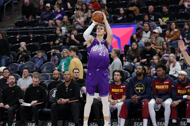 在为爵士效力的两个健康赛季(2022-23和2023-24赛季)中,马尔卡宁场均可以得到24.5分、8.4个篮板并以39.5%的命中率投进3.1个三分球。在他效力爵士的整整三个赛季里,联盟中只有杰森-塔图姆的三分球总数和扣篮总数都超过了他(塔图姆同期多打了52场比赛)。而且在每个赛季中,马尔卡宁的运球次数和持球时间(相对于其他高产得分手)总是接近联盟垫底。换句话说,他几乎是持球大核心卢卡(以及勒布朗)的完美搭档。