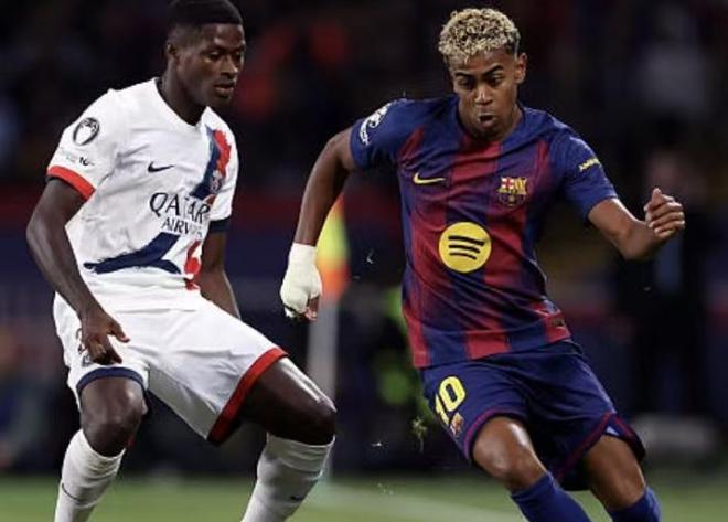 比分落后的巴黎随后展开了反击,马尤卢、阿什拉夫的射门都考验了什琴斯尼。第38分钟门德斯利用个人能力连过数人送出助攻,马尤卢把握住机会,推射扳平比分,上半场两队1-1进入中场休息。下半场回来双方互有攻守,亚马尔被门德斯重点照顾,后者只能用犯规阻止亚马尔有威胁的突破。比赛第72分钟,巴萨连换3人,莱万、卡萨多和巴尔德替补登场。