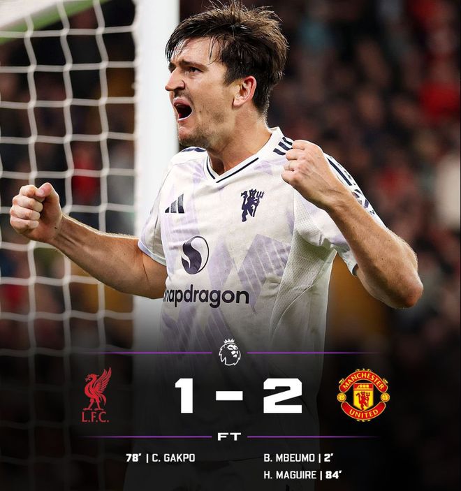 雷速体育10月20日讯 在今天凌晨刚刚结束的英超第八轮双红会中,利物浦1-2不敌曼联,遭遇了各项赛事的四连败。姆伯莫开场闪击利物浦,曼联1-0领先,比赛第78分钟加克波为红军扳平。但在比赛第84分钟,马奎尔头球贡献绝杀,帮助曼联客场全取三分。