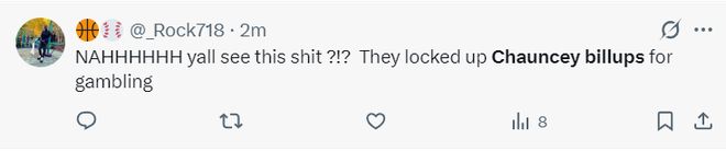 美球迷:天哪,你们看到了吗?昌西-比卢普斯因为赌球被逮捕了,他要坐牢了?