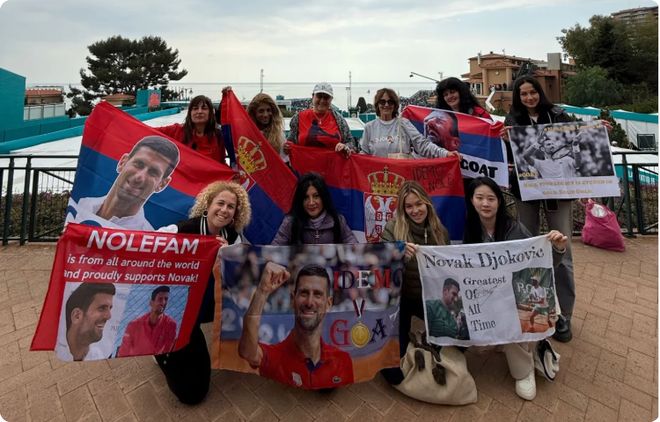 德约科维奇比赛时,许多人都会高举“Nole”的牌子,这是小德在塞尔维亚语中的昵称,它如同一个接头密码,创造出一种“自家人”的亲切感。谁不希望自己在满世界飞行的时候,见到自己的“家人”来支持呢。