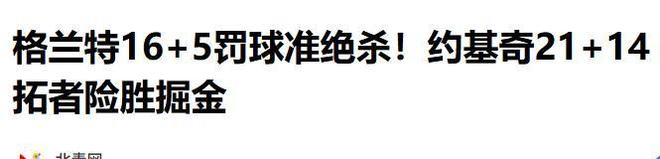 北青网:(格兰特16+5罚球准绝杀!约基奇21+14 开拓者险胜掘金2025.11.01)