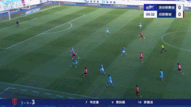 第19分钟,古尔芬克尔左路传中,费利佩头球扳平比分,深圳新鹏城1比1成都蓉城。