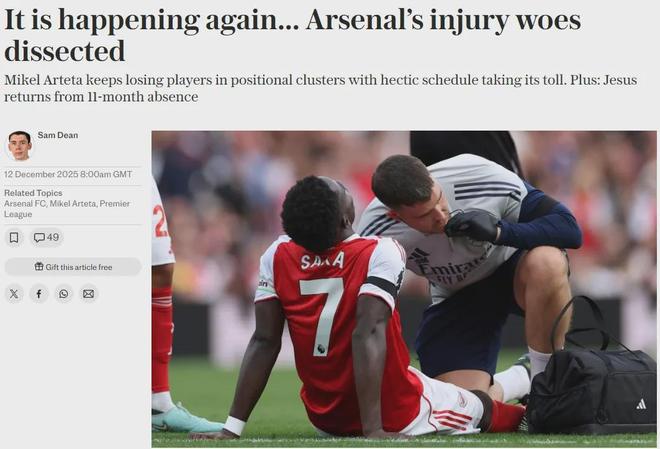 电讯报记者SD发文分析了阿森纳接二连三的伤病问题,看起来曼城和伤病是仅有的阻碍枪手争冠的因素。