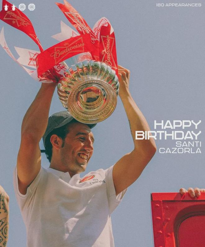 180场比赛29个进球,2个足总杯冠军,2个社区盾杯冠军,耳边永远的:“Oh!santi cazorla!”