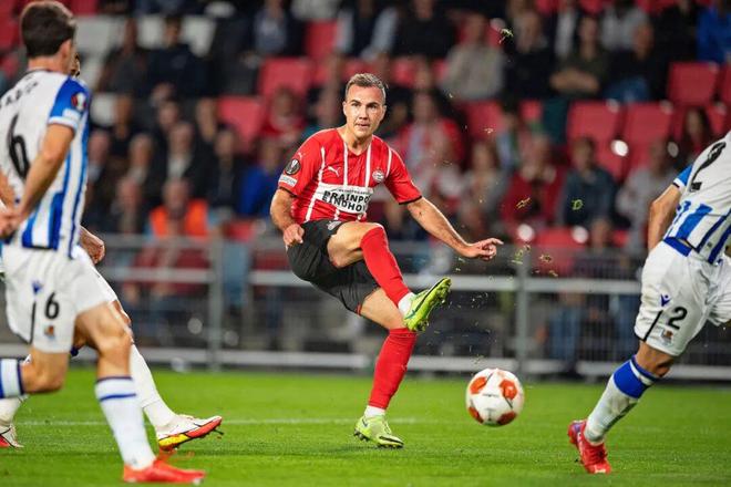 “33岁了,我不知道自己能否继续提升。人们可能会说,马里奥·格策还能做得更好,或者更差。我有幸去过海外踢球,在埃因霍温(下图),德国教练施密特给了我很大帮助。我们踢了欧联杯,联赛排名第二,那是非常美妙的两年。2022年回到德甲、加盟法兰克福后,一切都很顺利,我甚至还被弗利克带去了卡塔尔世界杯。那是真正的成功,因为此前我已经5年没进过国家队了。”