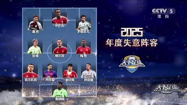 12月22日讯 2025年即将结束,天下足球栏目评选了2025世界足坛年度失意阵容,其中,维尔茨、伊萨克在列,阿劳霍、桑乔上榜。