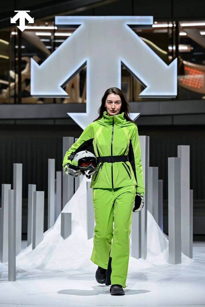 这批服装造型中,不只有品牌核心的单板、双板滑雪产品线,还有非遗香云纱面料款、ALLTERRAIN系列、与艺术家Daniel Arsham的联名系列产品等,从专业滑雪到机能风尚均有涉猎,展现了品牌适配不同时尚风格、不同场景穿搭的掌控力。