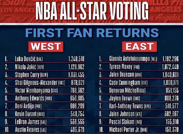- NBA | 全明星球迷投票首轮结果:东契奇票王字母哥登顶东部