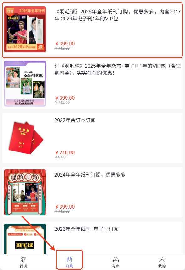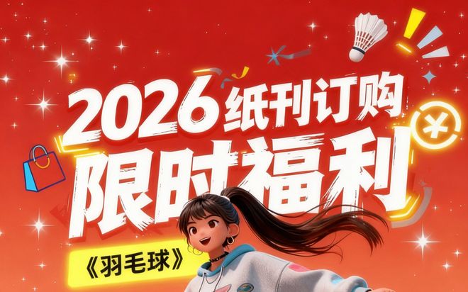 《羽毛球》2026全年纸刊预售开启!订全年纸刊送电子刊365天VIP阅读权限。快来订购吧,太优惠啦!